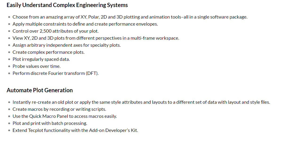 Tecplot Focus Gets You Answers Faster and enables you to quickly plot all your engineering and test data exactly the way you want. Analyze and explore complex datasets, arrange multiple XY, 2D and 3D plots, and then communicate your results to colleagues and management with brilliant, high-quality images and animations. Save even more time and effort by automating routine data analyses and plotting tasks. Available on Windows, Linux and Mac platforms, Tecplot Focus meets the needs of your multi-platform engineering group.