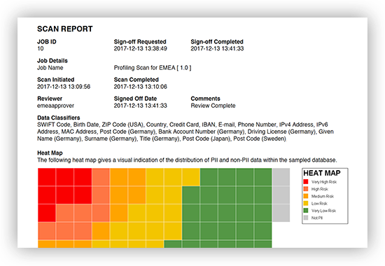 Delete, deliver, or anonymize data subject to DPA, FERPA, GDPR, GLBA, HIPAA, PCI, POPI, SOX, etc. Verify compliance via human- and machine-readable search reports, job audit logs, and re-identification risk scores.