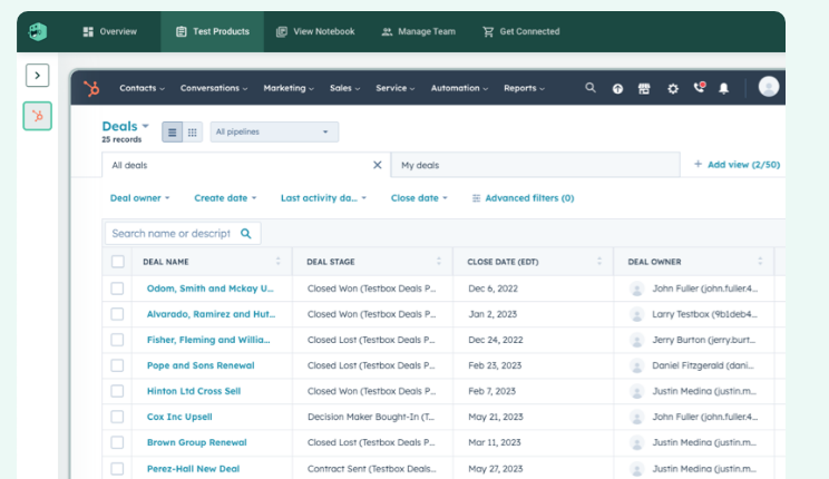 Have a better experience when buying software. Deliver a better experience when selling software. Select your role below to learn more. Whether you're buying or selling software, TestBox saves you time. It makes the buying process smoother, easier, and more enjoyable for everyone involved! Test and compare popular CRM tools side-by-side. Find the right tool for your business without having to talk to a salesperson. Customer relationship management (CRM) software is software designed to centralize, organize, and manage all aspects of customer interactions, enabling businesses to build and maintain strong relationships with their customers. By integrating features such as contact management, sales tracking, and analytics, CRM software allows businesses to gain insights into customer preferences, purchase history, and engagement patterns. This enables companies to increase sales, improve customer satisfaction, and foster long-term loyalty, ultimately driving business growth and success.