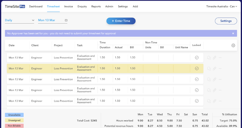 The team at TimeSite also provide excellent product and technical support.Cons: There is no aspect of the software I have had trouble with so far.