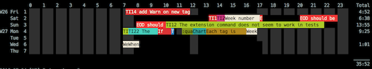 Timewarrior is a command line time tracking application, which allows you to record time spent on activities. You may be tracking your time for curiosity, or because your work requires it. At its simplest, you tell it to start and stop tracking time. We're not trying to convince you to track your time. But if you already do, or want to begin, then Timewarrior aims to be your preferred choice. You will be able to track your time intelligently, then generate useful visual or tabular reports of that time. An extension API lets you do anything you want with your data. Timewarrior records time, and associates blocks of time with tags. The recorded data can be exposed as JSON for any app to consume. Built-in reports, as well as a set of extension reports will give you plenty of options, in addition to customizing your time reporting using any programming language. There will be a collection of reports and extensions to download and use.