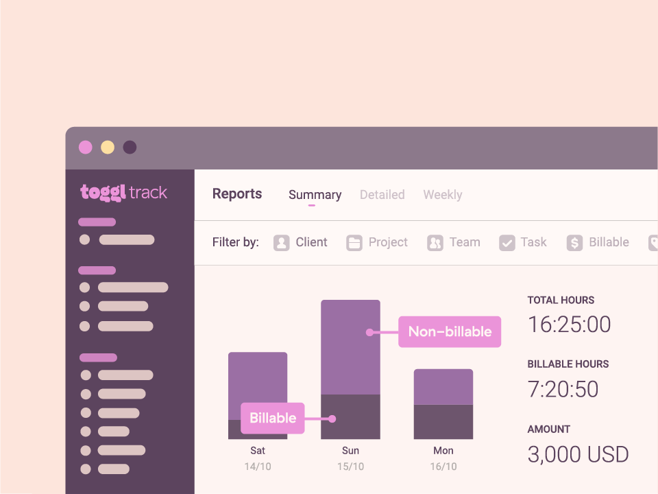 -Reporting tool. Toggl has a smart reporting tool that can be customized to my liking, choosing between different options like weekly or daily basis as well as detailed or summarized, and it will generate the report that can be exported and it's very easy to read, with a comprehensive analysis and information of all the time tracked.