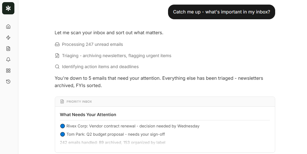 Extra Thursday is an AI-powered inbox assistant that connects to your Gmail and Google Calendar (via OAuth) to transform email management into a fast, context-aware, streamlined workflow. It treats your inbox like a database: it can scan thousands of emails in seconds, extract key insights or open loops, surface important threads, and highlight action items, so you don’t have to manually sort, search, or triage messages. Extra Thursday also drafts professional replies (from polite follow-ups to technical responses), auto-generates follow-up emails, and lets you review/edit before sending, dramatically reducing the time you spend writing and replying. With deep-context AI reading and understanding entire conversations, the platform helps manage email overload and makes your inbox actionable, rather than overwhelming. Privacy-wise, emails and calendar data are only fetched on demand per session; Extra Thursday does not store your full inbox or use your content to train its models.