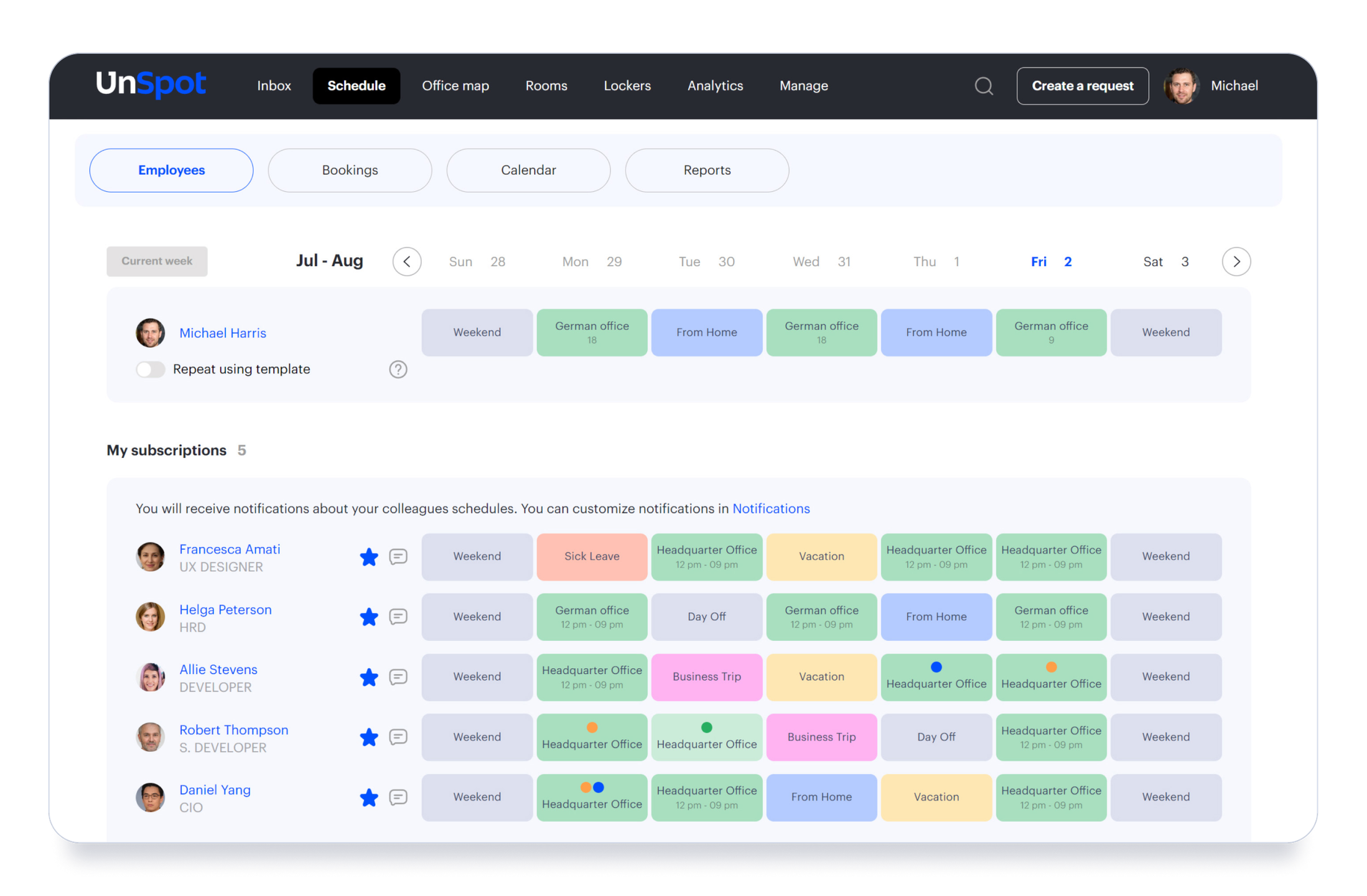 Overall: Our team operates in a hybrid model now, splitting our time with three days at home and two in the office. With UnSpot, we can easily reserve our days, which helps prevent everyone from coming in at the same time and ensures there are seats available.