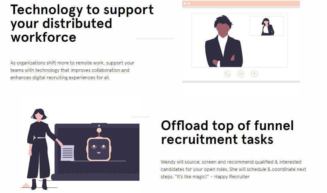 Help increase your recruiters’ bandwidth to better focus their time on the human experience. Automate task-driven recruitment processes with Wade & Wendy. Technology to support your distributed workforce. As organizations shift more to remote work, support your teams with technology that improves collaboration and enhances digital recruiting experiences for all. Offload top of funnel recruitment tasks. Wendy will source, screen and recommend qualified & interested candidates for your open roles. She will schedule & coordinate next steps. “It’s like magic!”. Wendy is available to chat with talent 24/7, allowing candidates to share their stories and go beyond their resumes with relevant insights about their experience for the specific role. Substantially increase the bandwidth of your talent acquisition team. Wendy enables your team to support exponentially more jobs at a time, drastically reducing the time to fill open roles, and substantially cutting your talent acquisition costs.