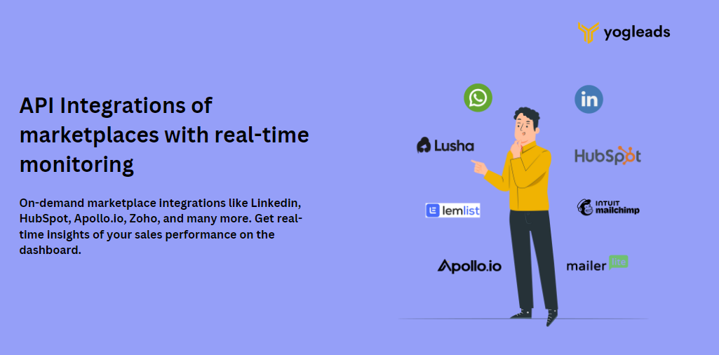 YogLeads is a fully managed one-stop solution for outbound sales teams, trusted by over 2500+ businesses, from rapidly growing startups to established market leaders. YogLeads provides businesses with experienced SDRs equipped with necessary technological requirements like lead generation, lead management, on-demand API Integrations, an AI-based training model, and a real-time analytical dashboard all on a flexible pay-as-you-go model.