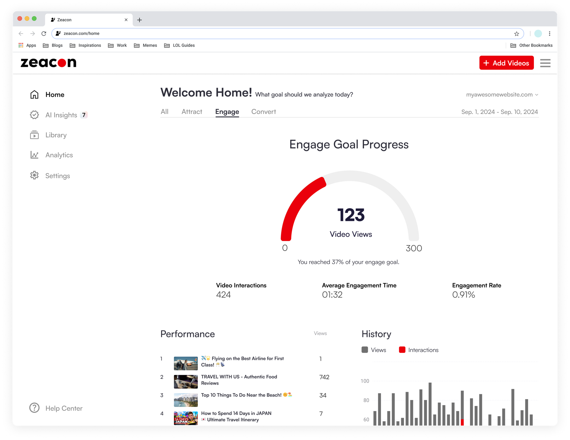 Zeacon empowers you to seamlessly host, organize, and publish videos directly on your website. Our advanced AI technology analyzes visitor interactions with both your videos and website, providing actionable insights to optimize user engagement and drive conversions. Whether you're looking to enhance viewer retention or boost your site's overall performance, Zeacon delivers the tools you need to make data-driven decisions effortlessly.