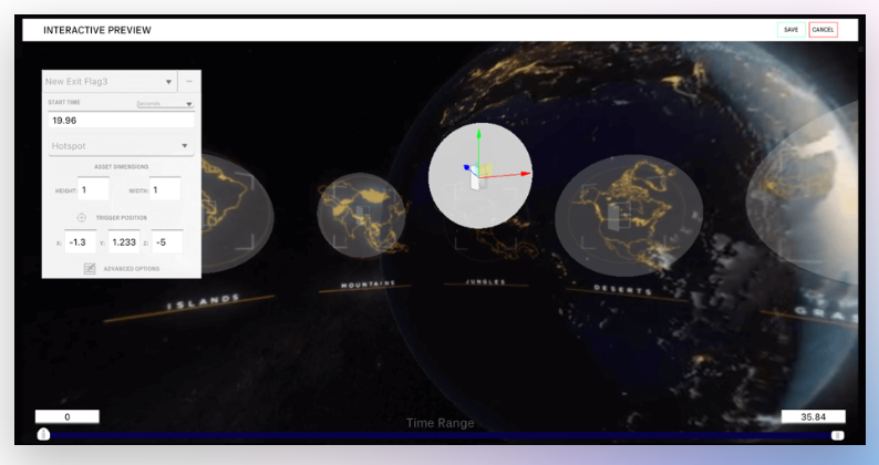 Create interactive 360°/VR quickly and easily using eevo’s Composer, an online toolset that makes it simple to build the interactive, nonlinear 360° experiences we call branching narratives, or “choose your own adventure” stories. The Composer requires no coding, simply upload 360° video and audio assets and add interactive elements with ease, creating new interactive experiences in minutes instead of days. The Composer allows you to make your 360° videos as interactive as you like, adding and editing hotspots and linking them to other 360° videos. Link hotspots to other 360° videos and, coming soon, to images or 2D video pop-ups as well. Use hotspots to restart, seek, or jump to other 360 videos. Set hotspots to be either visible or invisible to the end-user. Preview what hotspots will look like and where they will appear in the scene. Manage multiple hotspots in a 360 video at the same time.