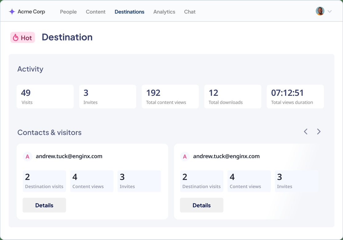 You can centralize your sales content with a few clicks, create amazing buyer experiences with so-called digital sales rooms / collaborative spaces in seconds, share it with your prospects and track buyer engagement in real-time.