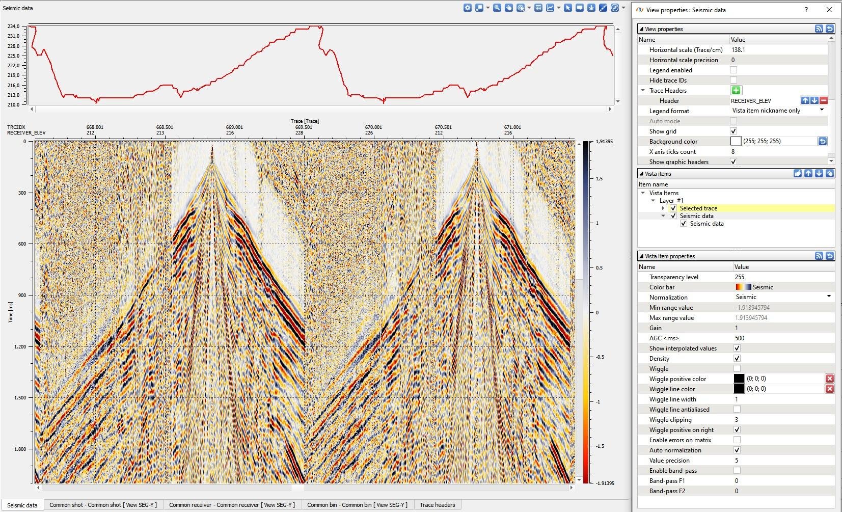 - Graphical representation of trace header(s) above seismogram view
