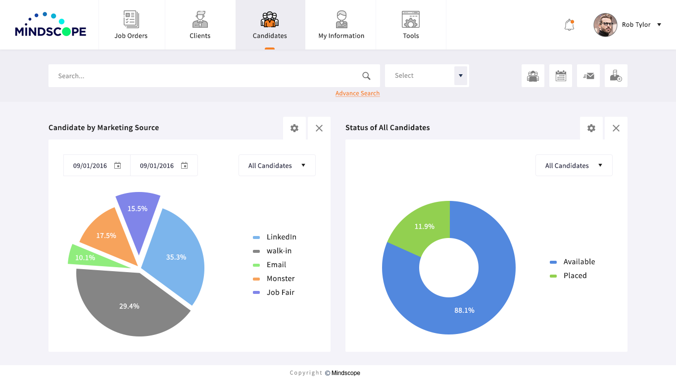 Mindscope is an applicant tracking system (ATS) that tailors to both temporary staffing and permanent recruitment agencies. It also comes with an industry-specific CRM tool. The staffing and recruitment system is multilingual and supports multiple currencies. It integrates with email and has an Outlook Plugin.