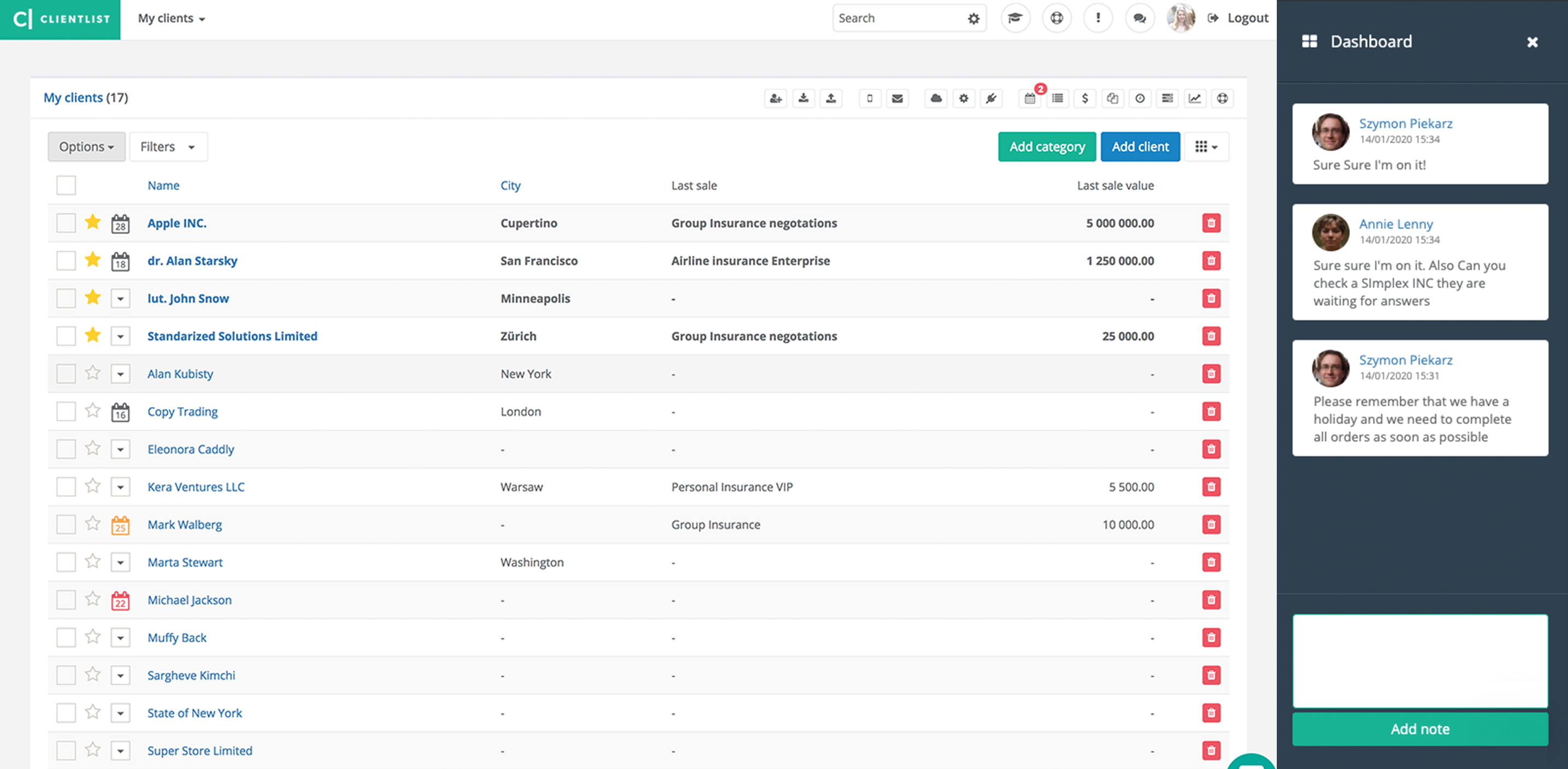 We help entrepreneurs to improve their sales with great client management. We offer a powerful tool with a unique pricing plan "Pay as you want". Collect all the client data you need. Add custom fields, groups, and tags, import and export documents. Make your account management easy and simple.