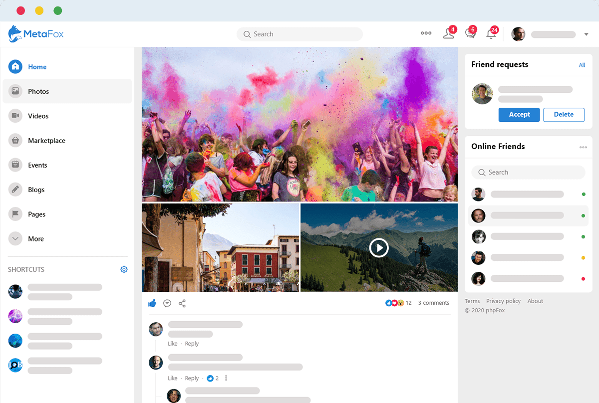 phpFox is a powerful social network platform for niche communities. Whether you want to build a social website for your business, organization, startup or just your common interest group, phpFox can help with lots of its built-in features. We have spent a great deal of time to work on performance improvements to ensure that the software is an Efficient Investment for your Growing Business. Whether your audience access your community on a desktop computer, a tablet or a mobile phone, your social content can adapt perfectly to any screen size. Customize your look and feel is just a breeze. No coding required! Our theme management system allows you to easily add, remove or edit any website part. Try it yourself today with 14-Day free trial,