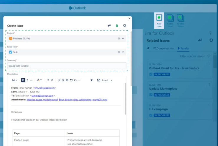 yasoon is an advanced integration app that connects Jira with key Microsoft 365 tools so teams can work more efficiently without switching platforms. It links Outlook Email, Microsoft Teams, Outlook Calendar, and Microsoft To Do with Jira to unify communication, task tracking, and documentation; users can create and sync Jira issues directly from Outlook emails, view Jira boards inside Microsoft Teams tabs, let internal customers raise support tickets through a Teams customer portal, and keep Jira tasks in Microsoft To Do for a consolidated daily task view. It offers presets and templates that standardize and automate common workflows across Teams, email, and meetings, reducing repetitive setup steps and ensuring consistent communication. Administrators can configure features and automation rules to tailor integrations to project needs, and built-in automation extends Jira’s processes with Microsoft 365 actions.